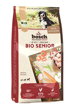 Bosch Bio Senior s vylepšenou recepturou je přírodní, chutné krmivo pro starší psy všech plemen od 7 roku věku. Krmivo je vyrobeno z kvalitních, regionálních surovin v bio kvalitě. Při výběru obilnin bylo záměrně upuštěno od pšenice, která je častou příčinou alergií. Receptura krmiva je obohacena o brusinky, jež jsou zdrojem cenných balastních látek, které v kombinaci s bylinkami podporují činnost střev. Brusinky jsou také bohaté na vitamín E, který má antioxidační účinky na volné radikály a napomáhá k ochraně buněk. Díky vysokému obsahu čerstvého kuřecího masa (35%) je toto krmivo pro seniory lehce stravitelné a velmi chutné.