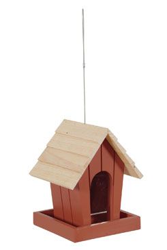 Závěsné dřevěné krmítko pro venkovní ptáky.