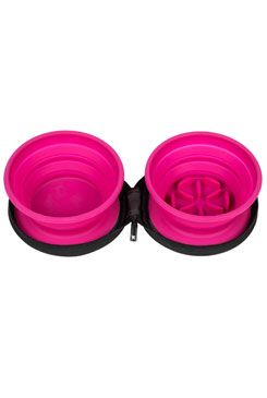 Jednoduše nejlepší cestovní misky na trhu. Jedná se o dvě skládací misky z kvalitního silikonu, které obě pojmou až 350 ml, a skvěle obstarají jídlo i vodu pro vašeho mazlíčka. Tato verze naší dvojité cestovní misky přichází však s novou úžasnou funkcí, která zpomaluje hltání jídla. K pouzdru jsou misky přichycené pomocí suchého zipu a pouzdro je vybavené kvalitním a odolným zipem. Misky jsou dostupné ve čtyřech zářivých barvách.