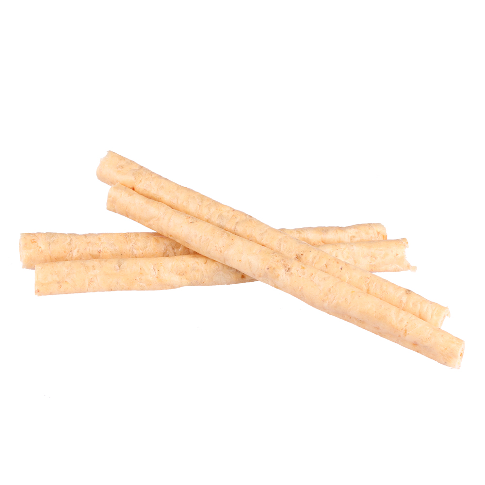 Pamlsek s plícemi je vyroben z hovězí kůže, neobsahuje barviva ani konzervanty.