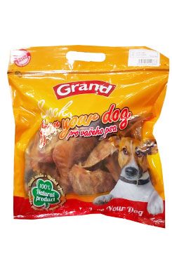 Sušené doplňkové krmivo GRAND vepřové ucho slouží jako lahodný pamlsek, který příznivě působí na střevní mikroflóru Vašich miláčků. Krmivo se vyrábí z čerstvých surovin na přírodní bázi (sušení), bez chemických přísad. Kvalitním sušením jsou minerály a vitamíny v krmivu zachovány. Sušené doplňky slouží současně jako pamlsky a odměny, čistí chrup, posilují žvýkací svaly, vyrovnává hladinu žaludečních šťáv a příznivě působí na střevní flóru.