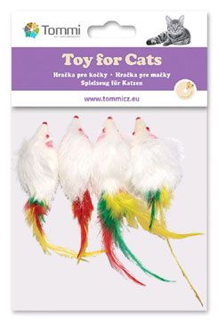 - Hračka kočka Myš malá s peříčkem 5cm Tommi 4ks
