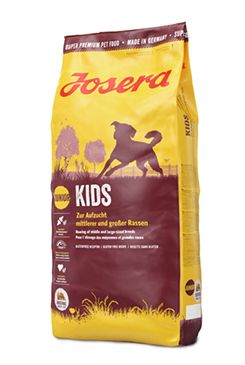 Josera Kids podporuje Vaše štěňátka od 8. týdne života v důležité dospívající fázi. Kvalitní přísady krmiva byly speciálně přizpůsobeny potřebám středních a velkých plemen psů s těžkou stavbou kostí. Optimální obsah vápníku a fosforu, dostatek vitamínu C, mangan a měď příznivě působí na vývoj kostry, silné kosti a zdravé klouby. Nižší obsah bílkovin a tuků podporuje stavbu svalové hmoty a v kombinaci s L-karnitinem zajišťuje, že se v těle příliš rychle neusazuje velké množství tuku. Společně s taurinem může L-karnitin podporovat zdravou funkci srdce. Vzhledem k tomu, že je toto prémiové krmivo vhodné i pro dospělé psy, můžou s ním být krmeni psi do dospělosti beze změny.
