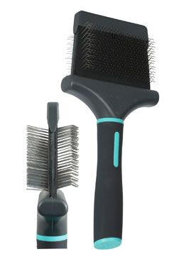 Pružný oboustranný rozčesávací kartáč pro psy na všechny typy srsti. Rozčesává, odstraňuje uvolněné chlupy a vyhlazuje srst.