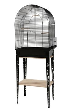 Designová klec pro středně velké ptactvo (andulky, agapornis,...) ve 2 barvách (matná bílá a matná černá) s podstavcem. Nohy podstavce jsou zdobené květinovým motivem.