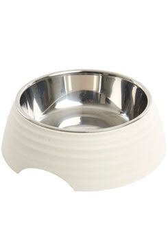Tato miska se skládá z dvou částí. Vnitřní nerezová část lze vyjmout a lehce omýt.Vnější část je vyrobena z plastu melamin,který je zdravotně nezávadný. Na dně misky jsou gumové nožičky a miska proto neklouže po podlaze.