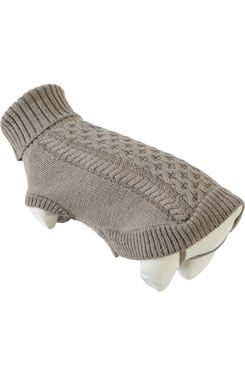 Pohodlný jednobarevný svetr s žebrovaným rolákem a copánkovým vzorem na zádech.Svetr má integrovaný otvor pro vodítko a otvory pro nohy .