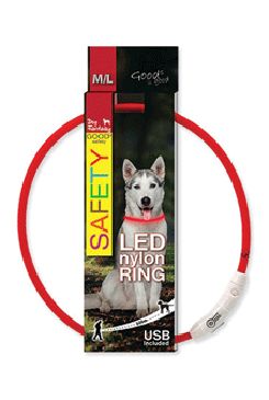 Obojek má 3 programy: rychlé a pomalé blikání a stálé svícení a světlo je viditelné až na zvdálenost 500m.