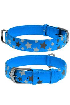 Obojek kožený Stars modrý (30-39cm/2cm)