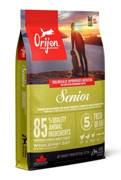 ORIJEN SENIOR obsahuje bezkonkurenční poměr volně chovaných kuřat a krůt, ryb lovených v přírodních vodách a vajec z hnízdních chovů. Všechny suroviny jsou nám dodávány čerstvé nebo syrové. Se sníženým obsahem sacharidů a nízkou glykemickou zátěží je krmivo ORIJEN SENIOR jedinečnou volbou pro zajištění vrcholové kondice všech starších psů, včetně toho vašeho.