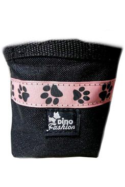 Pamlskovník Dinofashion je praktická taštička na pamlsky vyrobená z pevné voděodolné látky s motivem Černé tlapky na růžovém podkladu. Zapíná se na suchý zip. Vnitřek pamlskovníku obsahuje podšívku, ze které snadno vyklepete zbytky pamlsků. Na zadní straně je našitá karabina, která se připevní na poutko kalhot nebo opasek. Vyrobeno v České republice.