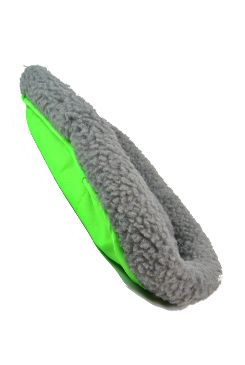 - V létě lze pelíšek převrátit nylonovou stranou uvnitř, na zimu zase naopak vlnou dovnitř.