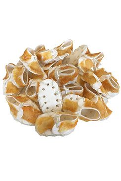 Popis: botička z bílé buvolí kůže o velikosti 7,5cm obalená kuřecím masem. Pro psy.