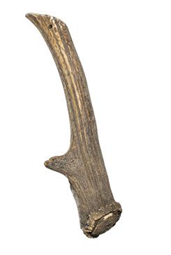 Záruka kvalitního parohu: Volně žijící jelen otírá paroží o stromy a keře a paroží se nasákne přírodními minerály, které mu dodají rozpoznatelnou hnědou barvu.