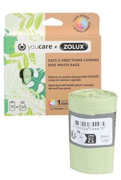 Tyto sáčky na psí exkrementy YouCare ve spolupráci se společností Zolux jsou ekologicky navrženy a jsou vyrobeny z materiálu „Mater-Bi®“ založeného na rostlinných materiálech. Jedná se o plastový materiál z biologických zdrojů. Pro ochranu životního prostředí jsou válečky vyráběny bez jádra, aby se omezil odpad. Každá role je držena pohromadě malým proužkem recyklovatelného papíru.