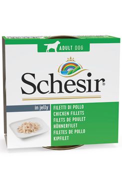 Konzervy Schesir jsou vyrobeny z vysoce kvalitních kousků masa, které jsou ponořeny v lahodném želé. Kousky masa jsou rozdrobeny pro snadný příjem, vždy se ale jedná o kousíčky skutečného masa, nikoli mletého. Konzistence je díky hustému želé měkká a chuť je naprosto neodolatelná. Každý pes si Schesir zcela zamiluje.