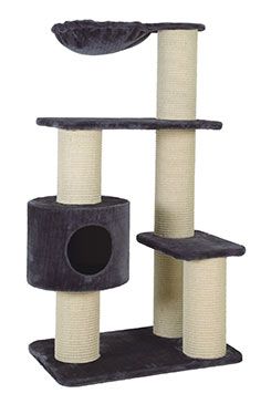 4 v 1: škrabadlo, odpočinkové místo a 2 plošiny kombinuje polstrovanou boudu z umělé kožešiny, dvě plošiny z umělé kožešiny, závěsnou houpací síť vyrobenou z umělé kožešiny a šest škrabadel ze sisalové rohože.