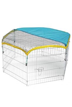 - součástí výběhu jsou dvířka, plachta chránící před sluncem a ochranná síť