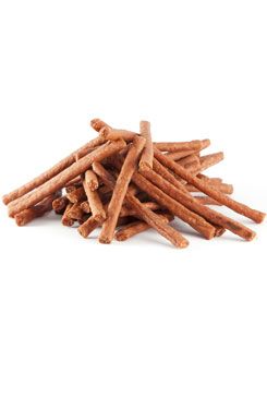 - Složení: Kuřecí maso 75%, Mouka 16%,Kukuřičný škrob 13%, vlákina 8%,Glycerin 2%, Přírodní sladidlo(maltitol) 0,1%, Ocet 0,1%,Rýžové kvasinky monascus 0,1%.