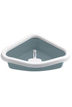Prostorná otevřená toaleta pro kočky do rohu místnosti. Zesílený okraj toalety zamezuje vypadávání podestýlky a udržuje tak čistý prostor kolem. Součástí belení je lopatka.
