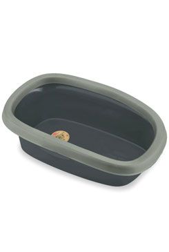 Prostorná otevřená toaleta pro kočky se zesíleným okrajem, který zabraňuje vysypávání podestýlky.