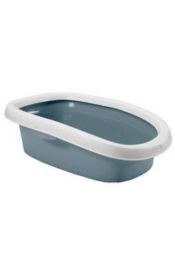 Prostorná otevřená toaleta pro kočky se zesíleným okrajem, který zabraňuje vysypávání podestýlky.