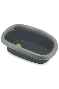 Prostorná otevřená toaleta pro kočky se zesíleným okrajem, který zabraňuje vysypávání podestýlky.