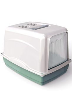 Krytá toaleta pro kočky. Díky této toaletě se nemusíte bát, že Vaše kočka bude substrát vyhrabávat ven. Navíc díky dvířkům a filtru s aktivním uhlím nemusíte mít strach ani z nepříjemného zápachu. Dvířka si kočka sama snadno otevře.
